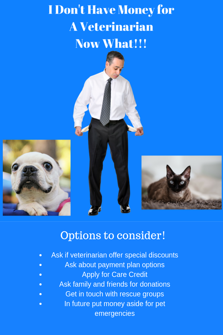 This may not help at the time of the emergency, but one can never be too prepared for future potential emergencies. If you have or plan to get a pet, it would be a good idea to have money put aside just in case of an unexpected emergency. Another idea is to apply for a credit card that would only be used for pet emergencies.